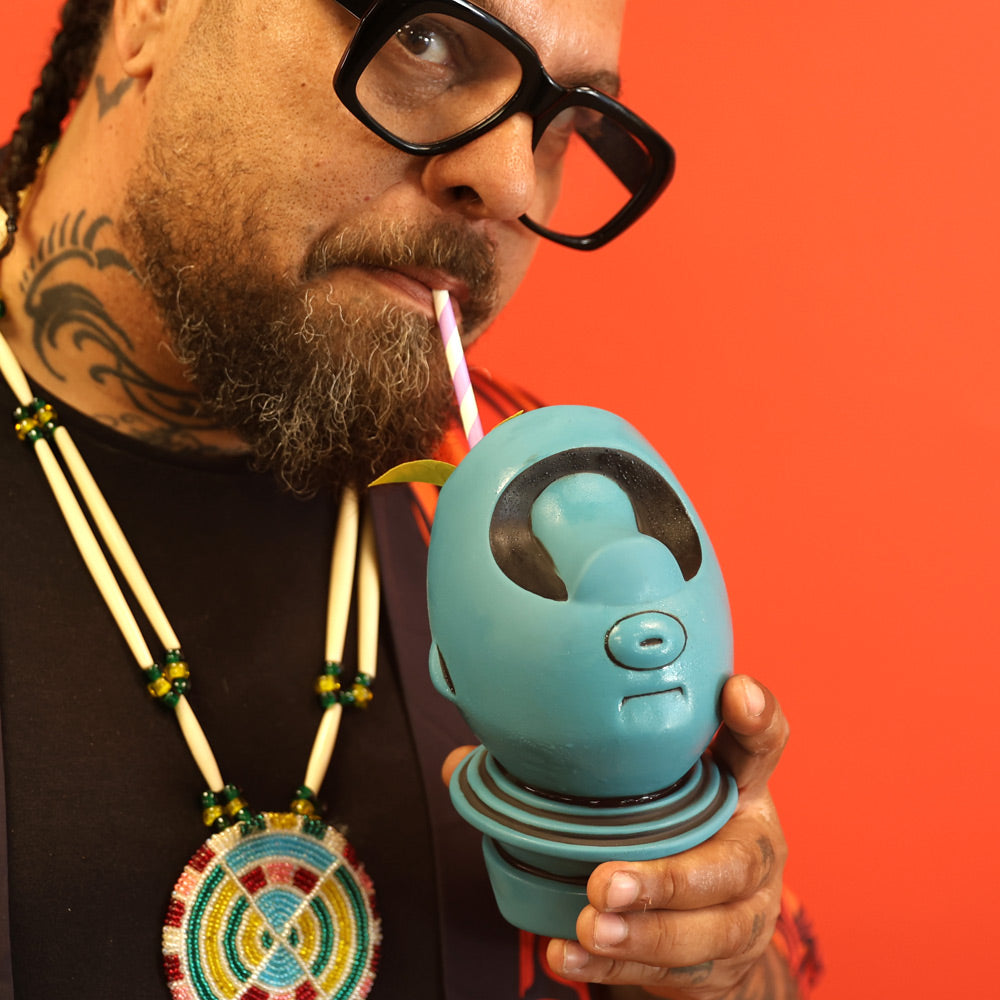 In our working with the most heralded artists in Tiki these last 25 years, there are a those artists whose remarkable creative chops scream-out their individual style and such is the case with Joe Vitale, here with our funkadelic “Space Moai”, truly showcasing Joe’s individual artistic style!