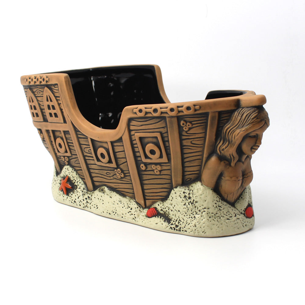 The Ship and Siren Boat Bowl offers a generous 38 oz capacity, ideal for sharing cocktails or beverages among friends. Its distinctive brown stain with black wash glaze creates a striking, artisanal finish that enhances any gathering. Crafted for both style and function, this bowl is perfect for serving large drinks with a unique nautical flair.